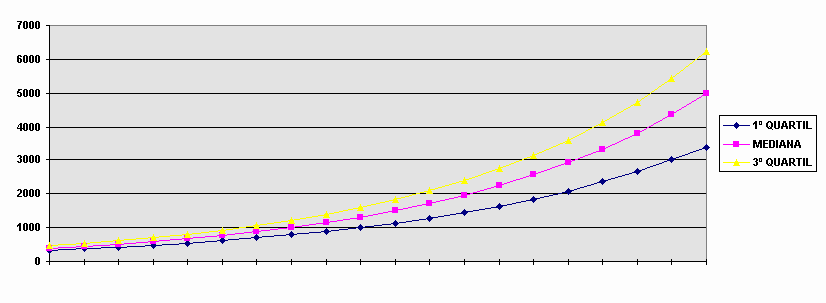 Assim, a projeção dos quartis se realizará através do ajustamento exponencial, isto é, uma curva.